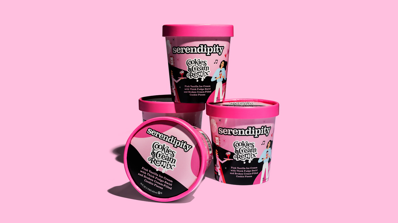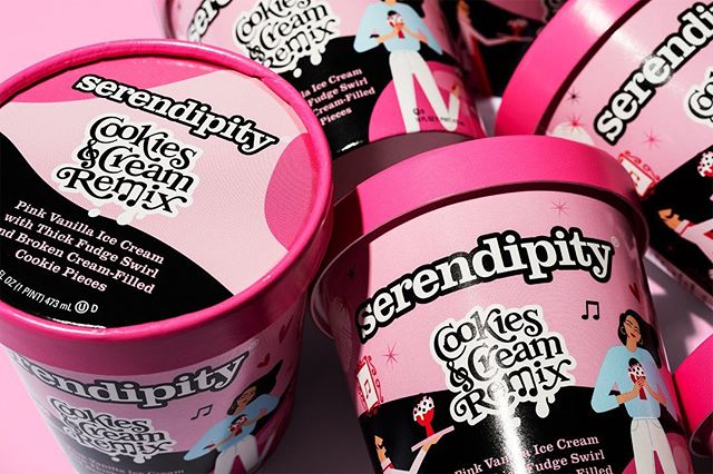 Packaging design for the ice cream brand created by Selena Gomez for Serendipity Ice Creams.